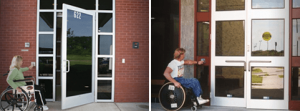 Horton’s EasyAccess Series 7100 swinging doors are ideal for building restrooms. Single and pair systems are available with choice of inswing, outswing, and parallel inswing configurations.
